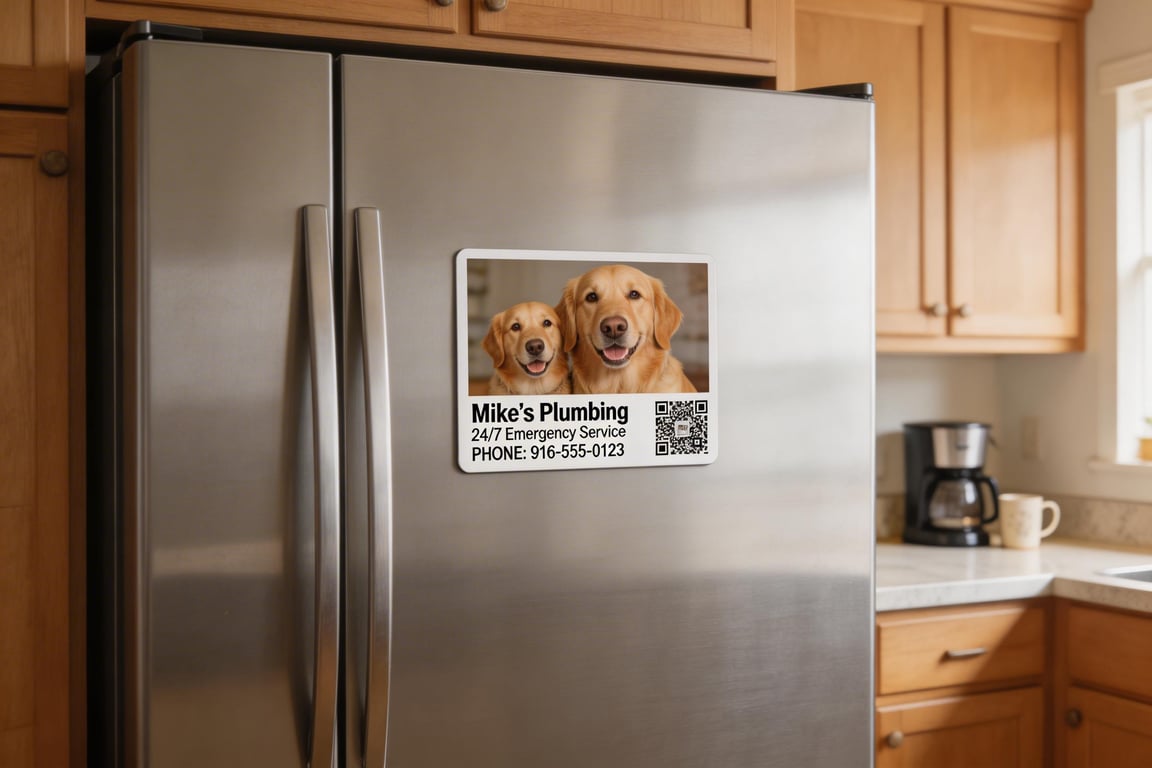 "Customers love the magnets. We get repeat calls because our number is always on their fridge."